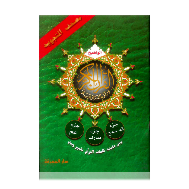 This is Amma, Tabarak and Qad Same'a parts of the Tajweed Quran, parts twenty eight, twenty nine and thirty, which starts from surah "Al-Mujadila " till sura "An-Nas". Considering that these Parts contain small surahs; this item is a perfect start for kids, beginners and students.
