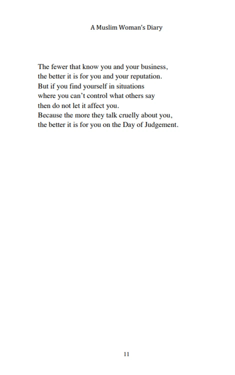 A Muslim Woman's Diary is a collection of thoughts, reminders and advice in the form of quotes from a Muslima to all her sisters across the world.