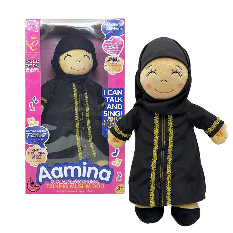 Our beloved AAMINA Abaya Special doll features a removeable hijab and two levels of content!