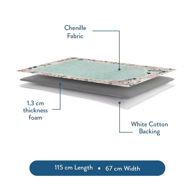 Adult Padded Prayer Mat with Soft Mint Floral Design