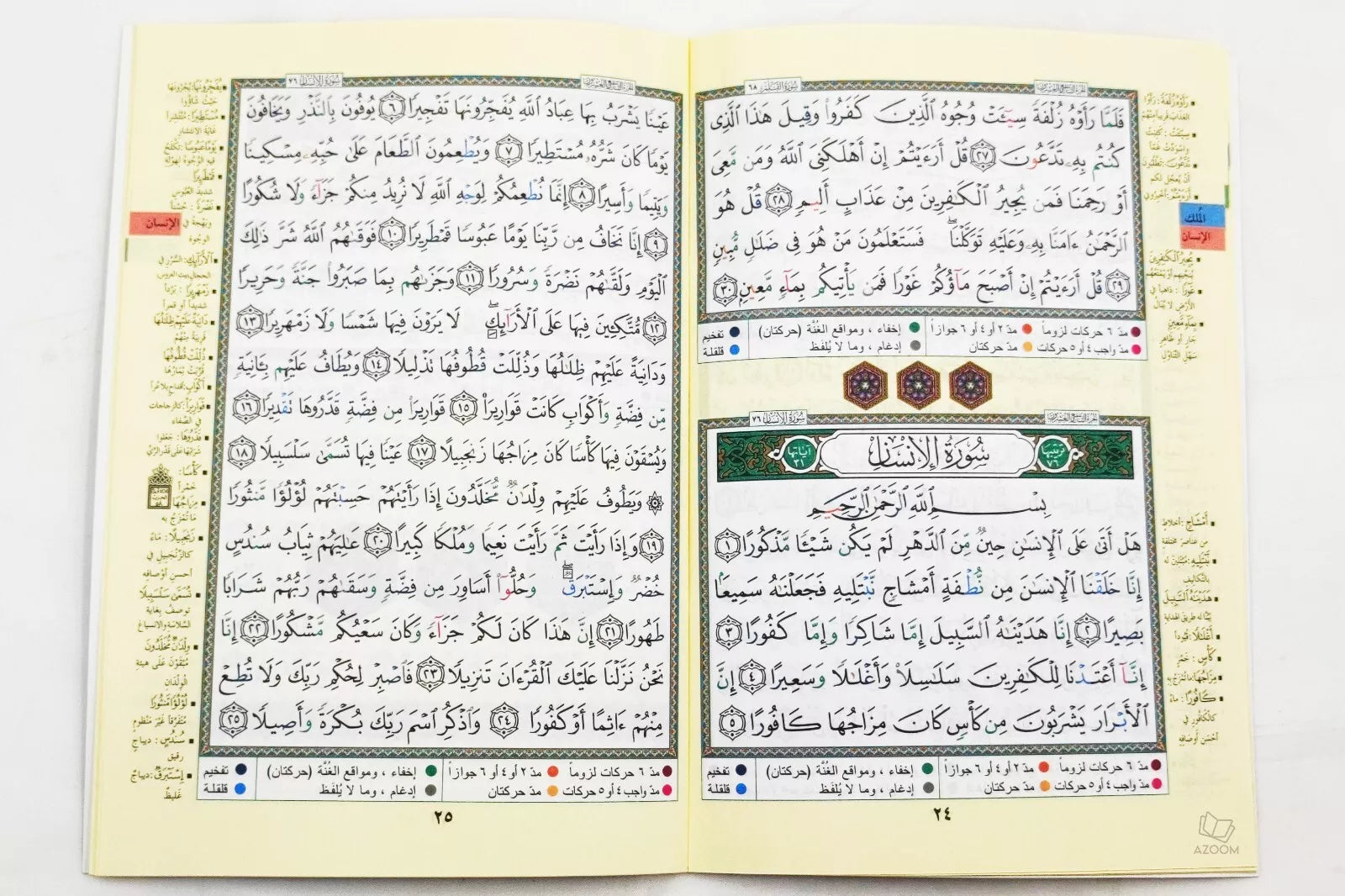 Each page here contains 15 lines as in the standard Quran. With interpretation of selected words on the margin of each page. These surahs comes together in a nice glossy cover.