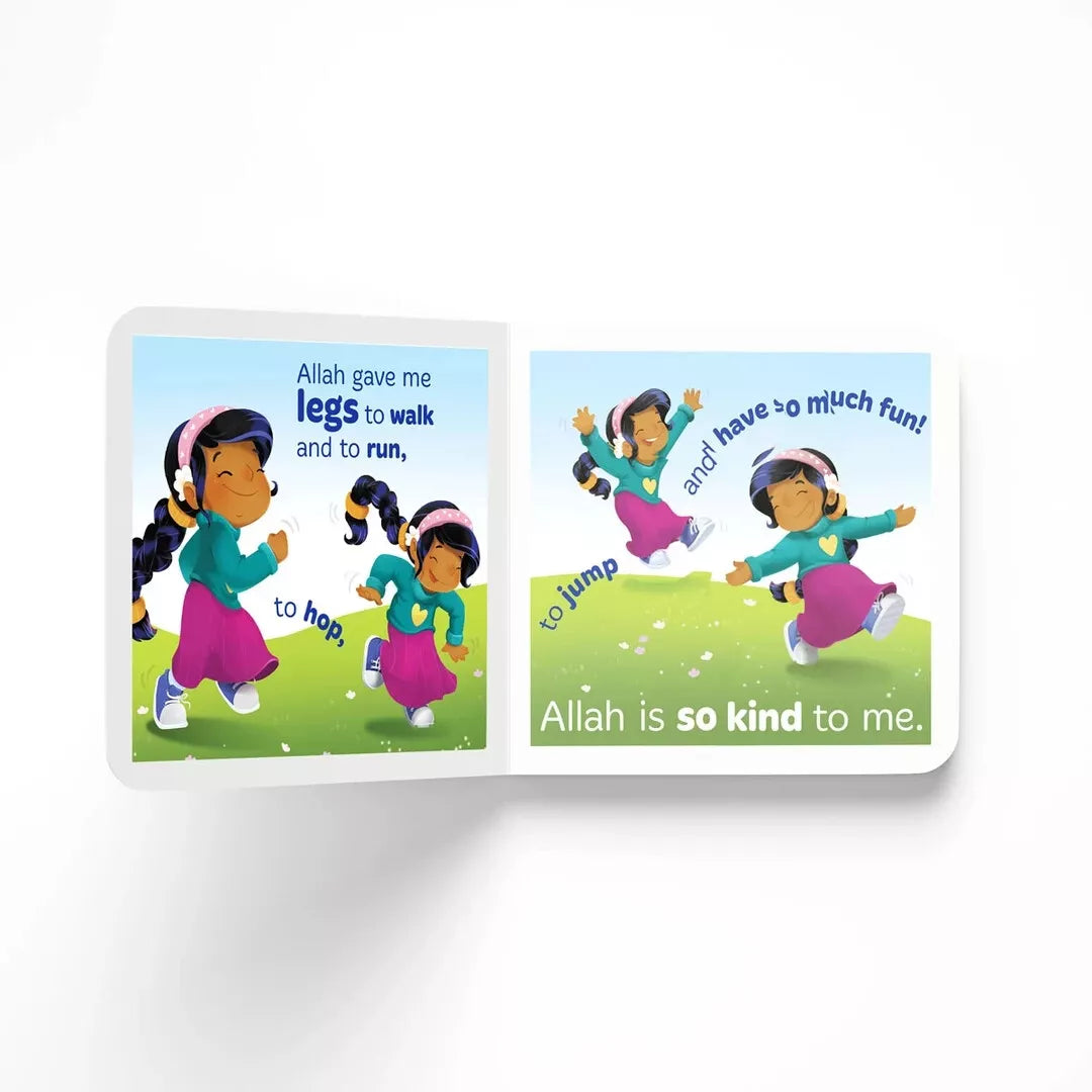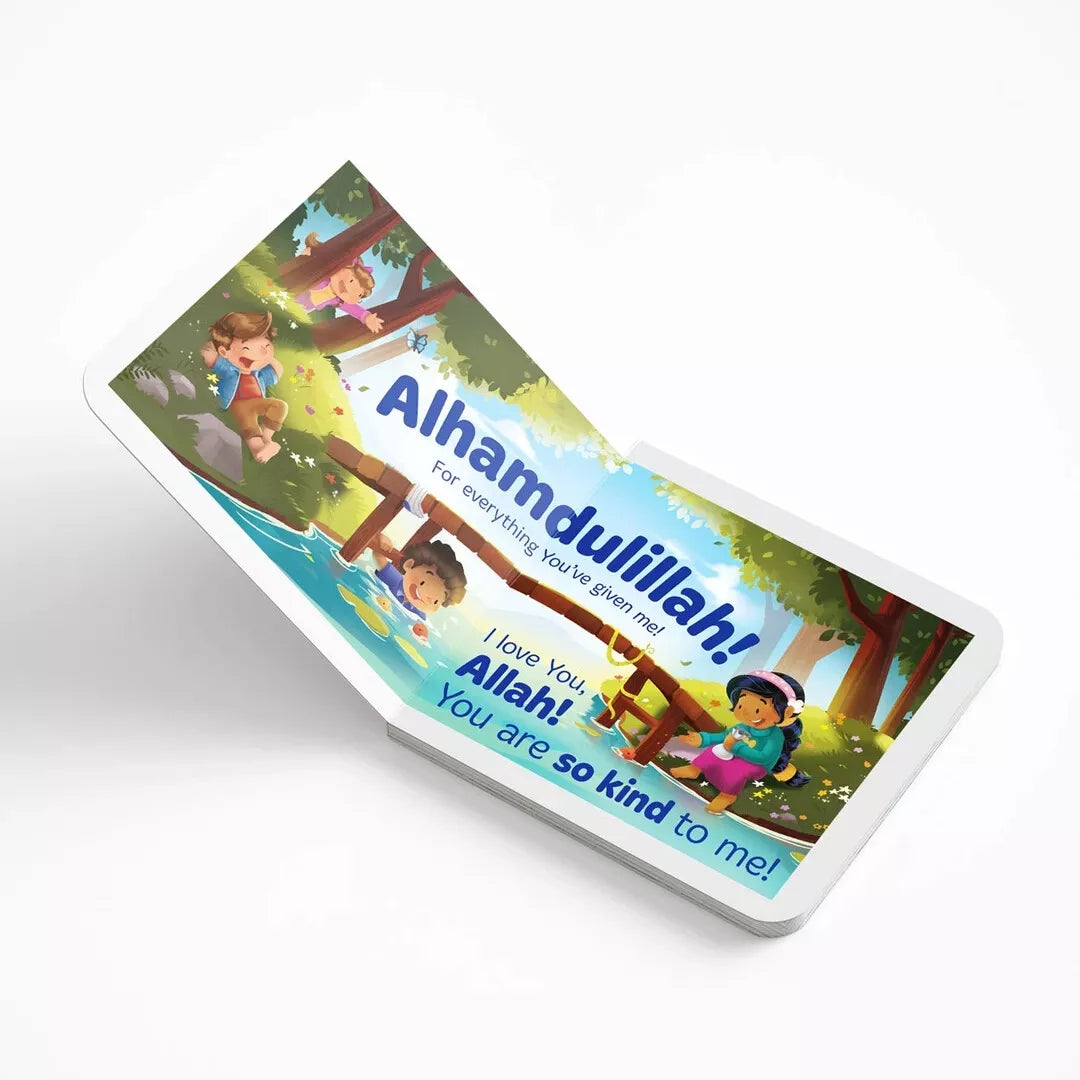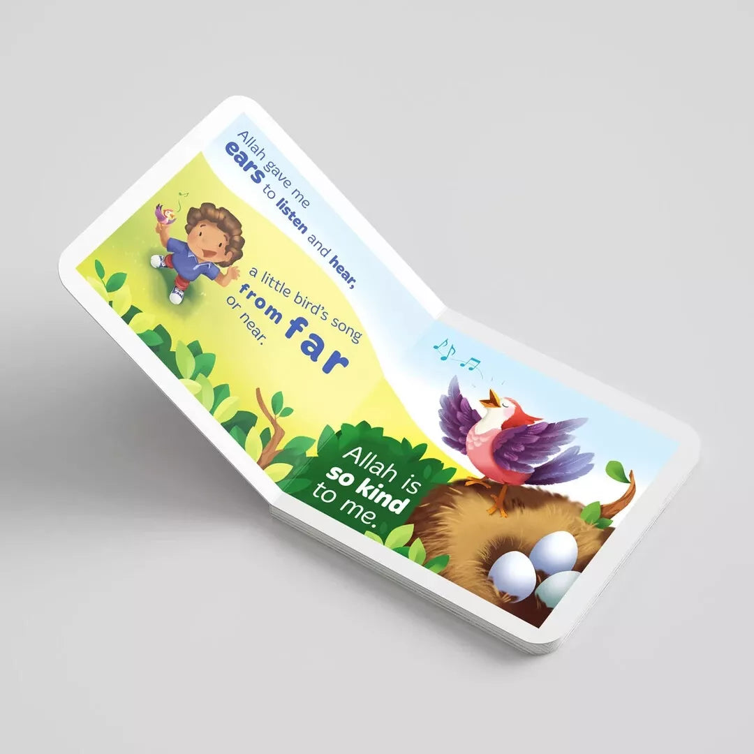 Cute and colourful illustrations featuring boys and girls from different cultures all enjoying Allah’s kindness.