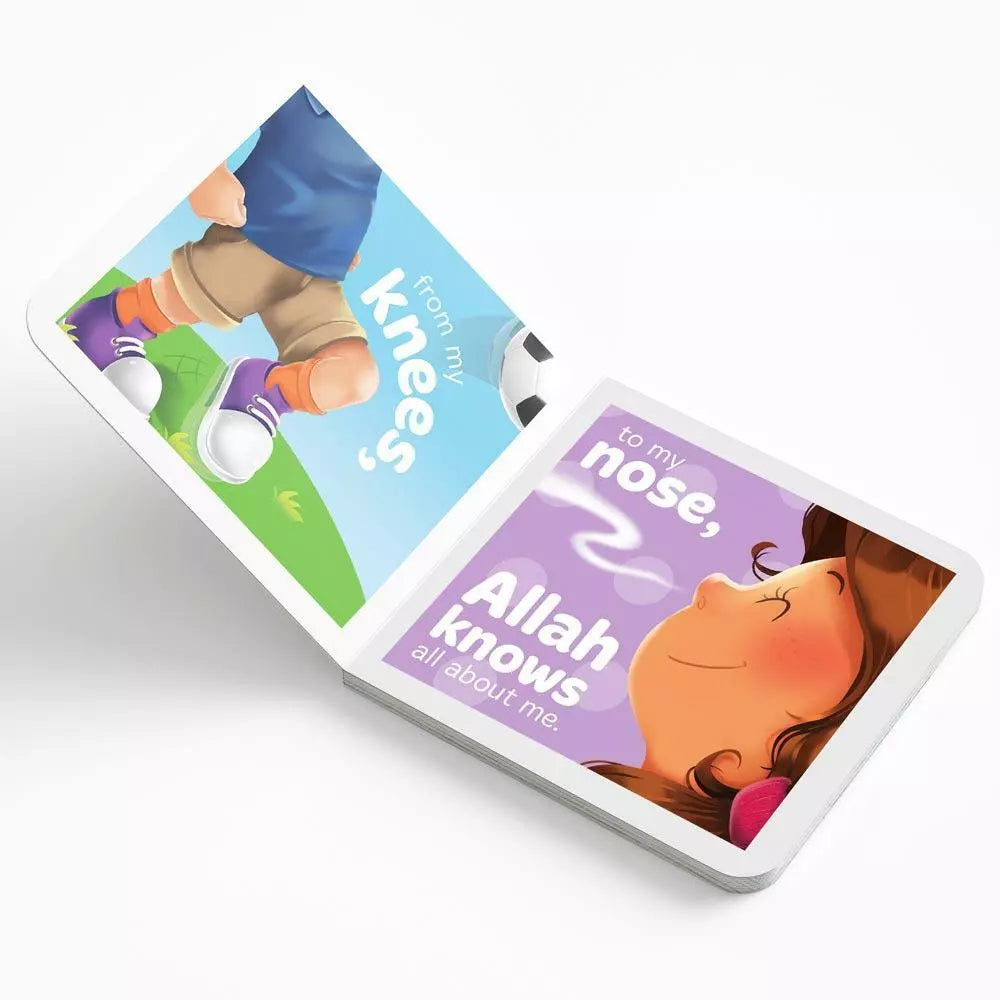 The result was this; a delightful little board book called ‘Allah Knows All About Me,’ that’s been crafted, written and illustrated to introduce the youngest of children to believe in Allah, in a way they find as natural as life itself. This book is written using charming rhyming text with the repeated phrase ‘Allah knows all about me,’ which reinforces your child’s faith in their Creator with the turn of every page. The language is simple yet fluid so your child would love to read it time and time again. The narrative calls on everyday thoughts, feeling and emotions, helping your child to understand the concepts of faith in a way that relates to the way they see the world. The soft-coloured, clear and captivating illustrations used in the book feature both genders and compliment the text perfectly. With its thick, durable board pages, the book has been perfectly sized to fit into your young child’s hands. So if you are looking for a book that can instil the love of Allah in the hearts of your child while also introducing them to appealing literature, then ‘Allah Knows All About Me’ would be a wonderful addition to your child’s library.