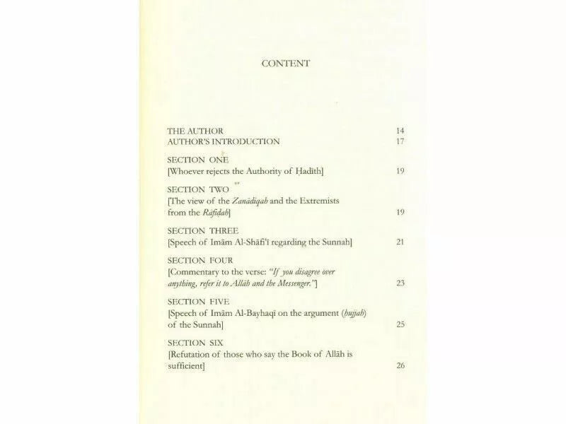 During his time, Imam al-Suyuṭi felt a genuine need to pen this compelling book in confuting those who either rejected the Sunnah altogether or did not grant it the status and respect it deserves in the religion. He primarily compiled from the works of Imam Al-Bayhaqi elucidating the position of Imam Shafi'i, and firmly laid out the arguments supporting the Sunnah of the Prophet by outlining its critical importance, its authority and implication to one's life. Salvation therefore lies in embracing the Sunnah fully, for indeed it is the key to facilitating our worldly lives and thereafter, unlocking the doors of Paradise, as Shadh ibn Yaḥya said perfectly, "There is no better way to Paradise than the way of those who have followed the Sunnah."