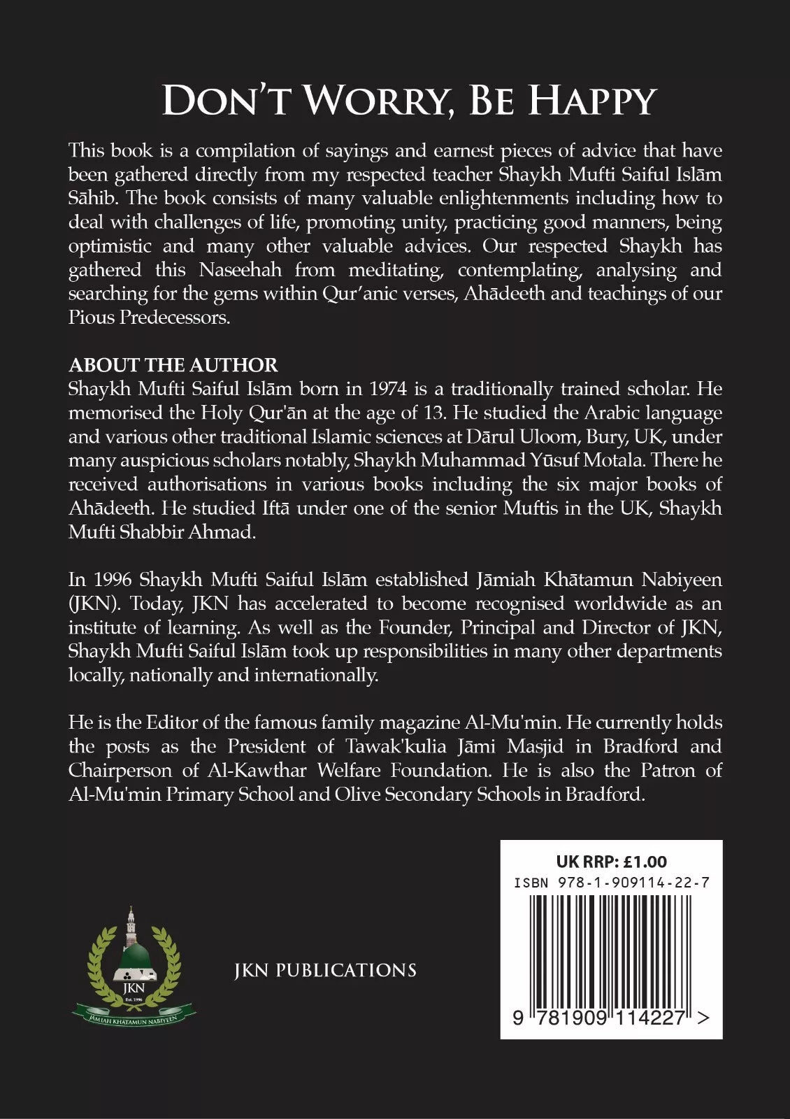 This book is a compilation of sayings and earnest pieces of advice that have been gathered directly from my respected teacher Shaykh Mufti Saiful Islām Sāhib. The book consists of many valuable enlightenments including how to deal with challenges of life, promoting unity, practicing good manners, being optimistic and many other valuable advices. Our respected Shaykh has gathered this Naseehah from meditating, contemplating, analysing and searching for the gems within Qur’anic verses, Ahādeeth and teachings of our Pious Predecessors.