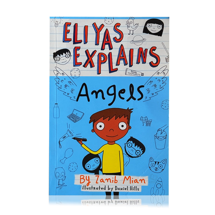 'I'm Eliyas. I'm really good at explaining things my adults told me about, which is handy for you if you're curious about Angels. My family is kind of wacky, you'll hear lots about them too, and the funny things that happen to us, but mostly about angels.