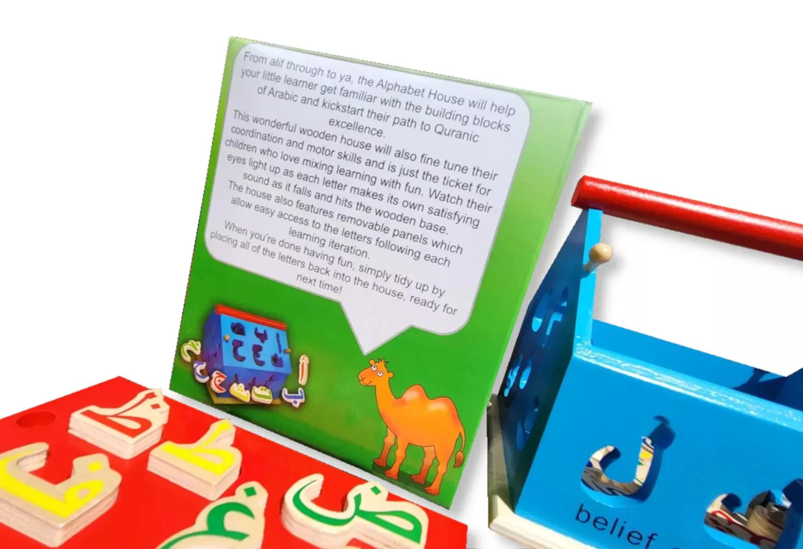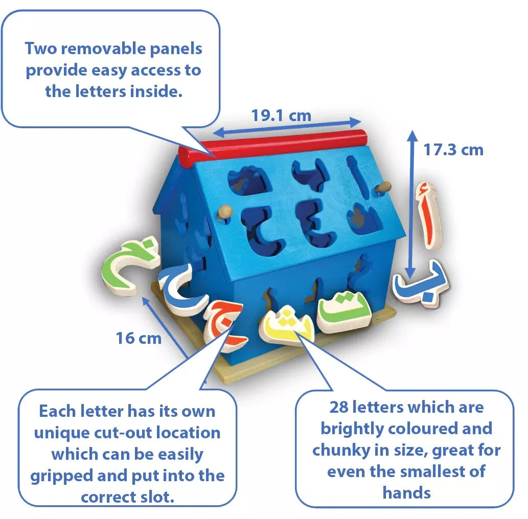 The Alphabet House will help your little learner get familiar with the building blocks of Arabic and kick start their path to Quranic excellence. This wonderful wooden house will also fine tune their coordination and motor skills and it's just the ticket for children who love mixing learning with fun. Watch their eyes light up as each letter makes its on satisfying sound as it falls and hits the wooden base. The house also features removable panels which allow easy access to the letters following each learning iteration. When you're done having fun, simply tidy up by placing all the letters back into the house, ready for next time!