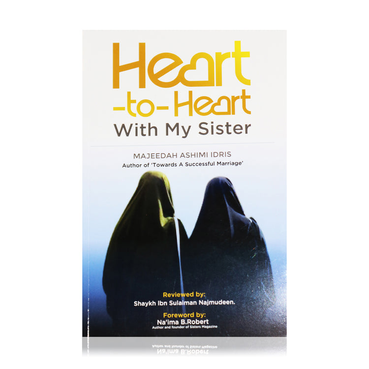 The book Heart-to-Heart with My Sister' is a discussion of the complexities of the contemporary time; the challenges Muslim women face in their daily lives. The author gives concise accounts of her experiences in marriage and medics, using the experiences of women she had come across, and general issues bothering people from afar. She communicated the idea in a deep and resonating manner to remind her sister of her duties and obligations as a slave of Allāh, and her role, status and duties as a wife.