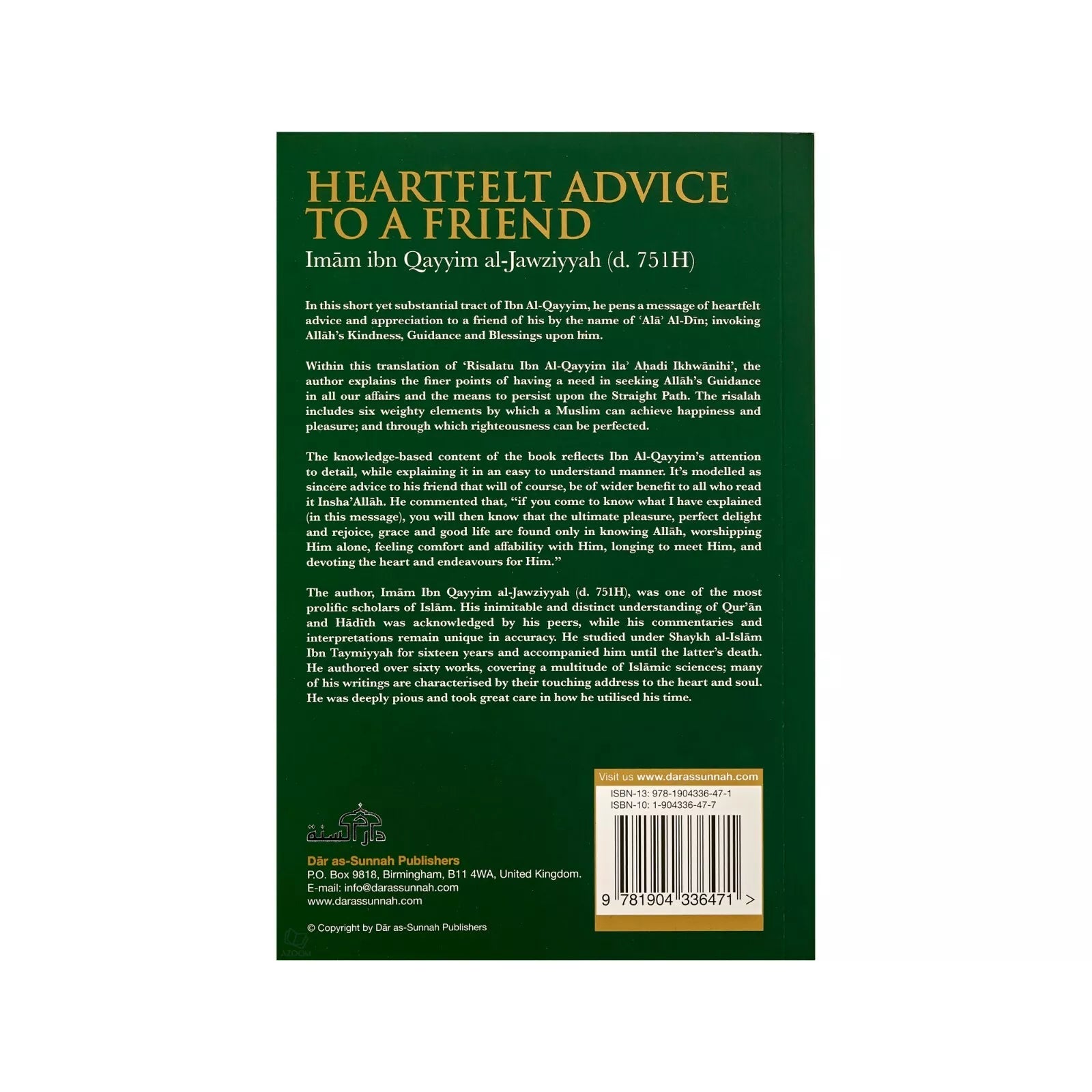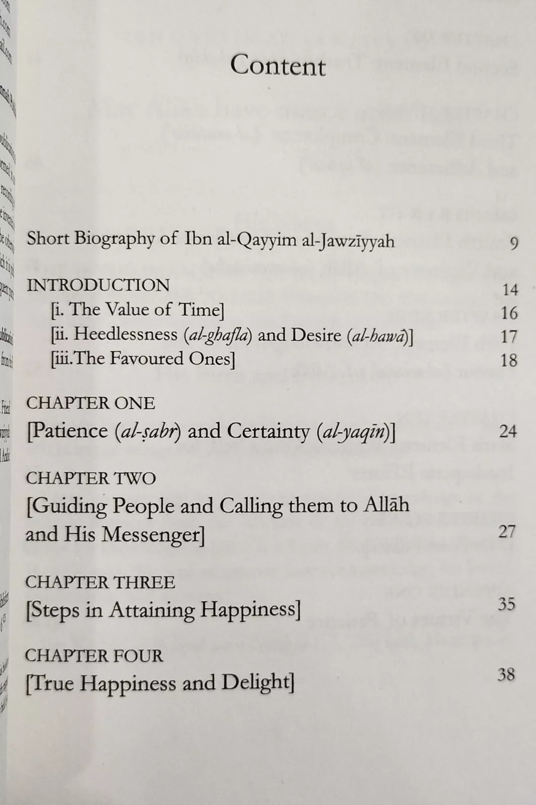 In this short yet substantial tract of ibn al-Qayyim, he pens a message of heartfelt advice and appreciation to a friend of his by the name of 'Ala' Al-Din; invoking Allah's Kindness, Guidance and Blessing upon him. Within this translation of 'Risalatu ibn al-Qayyim ila' Ahadi Ikhwawanihi', the author explains the finer points of having a need in seeking Allah's Guidance in all of our affairs and the means to persist upon the Straight Path. The risalah includes six weighty elements by which a Muslim can achieve happiness and pleasure; and through which righteousness can be perfected.