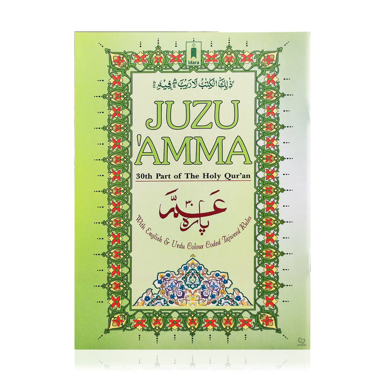 It is a great pleasure for Idara to introduce this Colour Coded Juz’u ‘Amma (30th Part of The Holy Quran) with English Colour Coded Tajweed Rules. This humble effort is an attempt to facilitate the Tilaawah of the Qurân with Tajweed. Seven different colour shades have been used & each colour represents a Tajweed Rule.