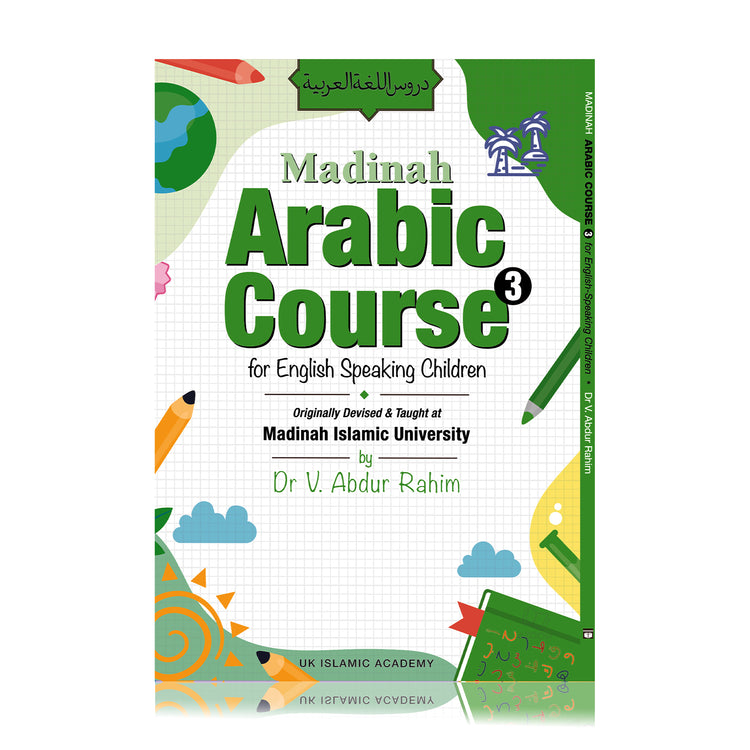 Madinah Arabic Course for English Speaking Children Book 3 of 5. This is a foundation course designed to teach school children Traditional Classical Arabic. The material for this course is broken into several parts, with interactive exercises and colourful illustrations to aid their learning.