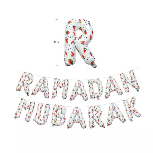 🍉 Set Includes: 10 self-sealing foil balloon letters spelling "RAMADAN MUBARAK."