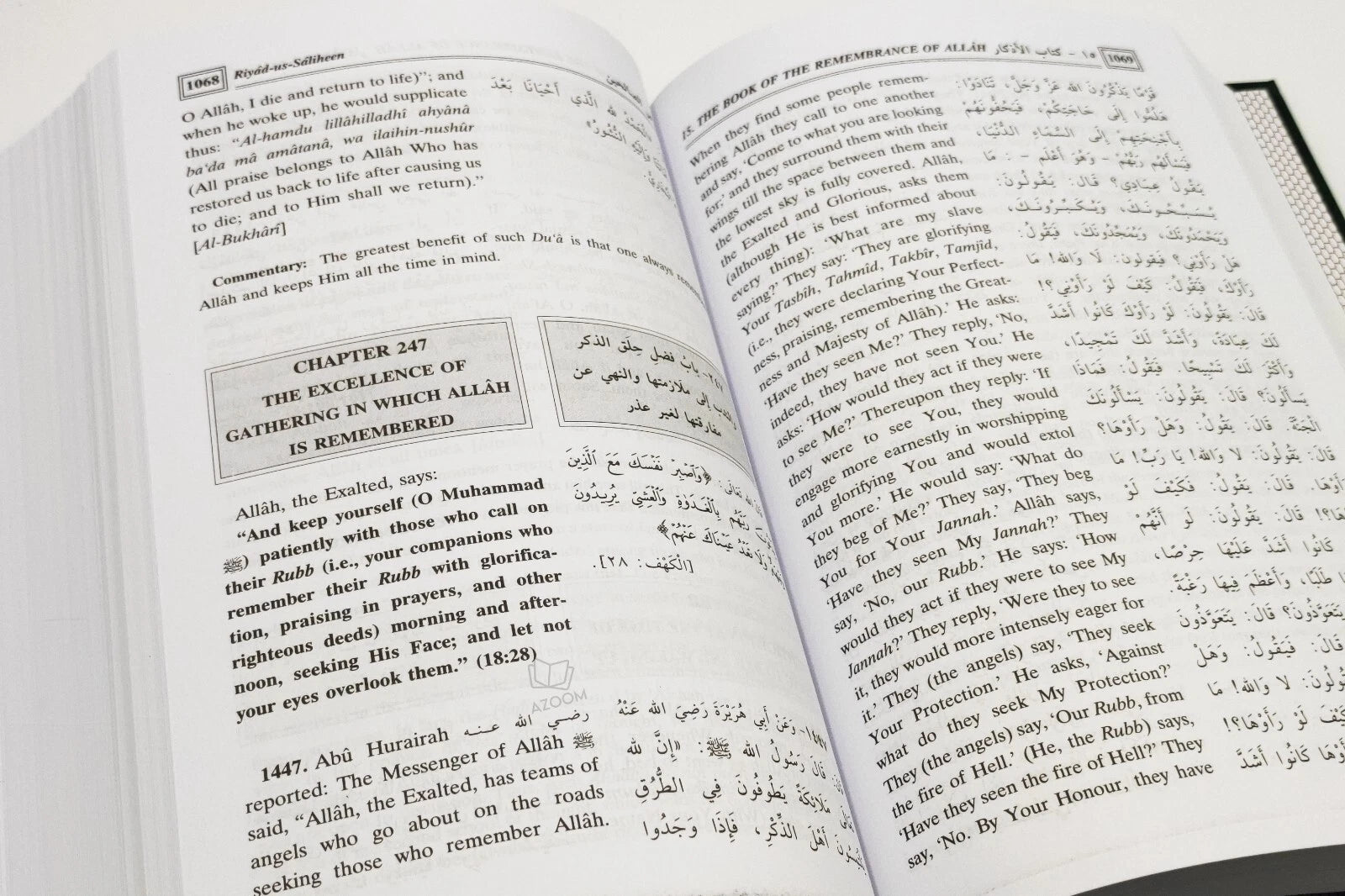 We praise ALLAH that He enabled us to publish many books on religious topics in the Arabic, Urdu and English languages which acclaimed great popularity in Arab countries as well as in America, France and European countries besides Pakistan, India and many African countries. We try to present publications based on authentic research material in lines with the Qur'an and Sunnah, and that are free from every type of vague conception, weak authority and false ideas. Now, we have published Riyad-us-Saliheen with the same spirit and same tradition of good research work, professional editing and excellent printing standard.