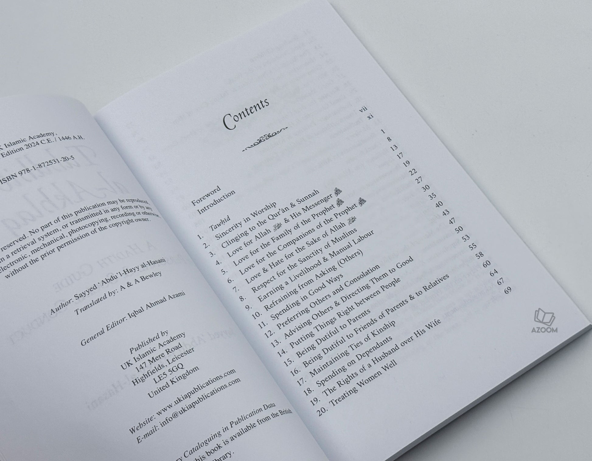 Tahdhib Al-Akhlaq, a Hadith Guide for Personal and Social Conduct is a gentle introduction that takes Ahadith from the six authentic collections predominantly from Bukhari and Muslim and arranges them into easily understood and accessible subject matter such as sincerity in worship, maintaining ties of kinship, teaching children, thankfulness and modesty etc.