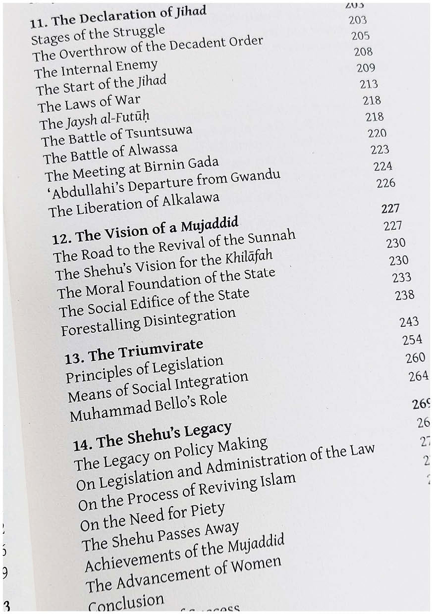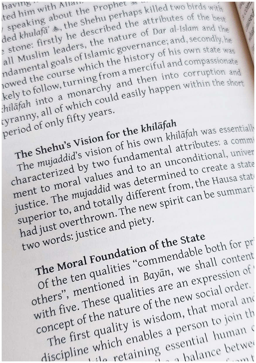As well as giving the biography of the Shehu and a comprehensive account of the history of his movement, the book also provides an in-depth examination of his teaching and literary works. These factors are all inextricably interwoven since, in a way scarcely equalled by any other historical figure, the Shehu's writings sprang directly out of the exigencies and requirements of his immediate situation and were what drove his movement forward and gave it its momentum. As will be seen, his sole inspiration and source of guidance in every instance were the Book of Allah and the Sunnah of his Messenger (SAAS) to such a point that he even died at exactly the same age. It is also astonishing how relevant the Shehu's teachings are, in spite of the clear difference in both time and environment, to the situation of so many Muslims in the world today and the solution to many of the problems currently besetting Islam are clearly indicated within its pages.