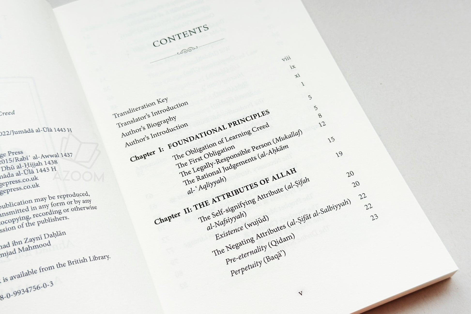 The essence of Islam is its creed, which validates the performance of one's worship; thus making it eligible for acceptance. The obligation to have sound doctrine has led Muslim theologians to develop an elaborate discipline of creed based primarily on the Qur'an and Sunnah, whilst also incorporating sound rational argumentation. This work by Shaykh Ahmad ibn Zayni Dahlan is a summary of the core tenets of faith in the manner of the Late-Sunni Tradition, enumerating what a Muslim should believe regarding Allah; the prophets; the Divine Scriptures; the angels; the Resurrection Day, with its prelude and finale; the Prophet's Companions [may Allah bless him and give him peace] and miracles of Allah's friends.
