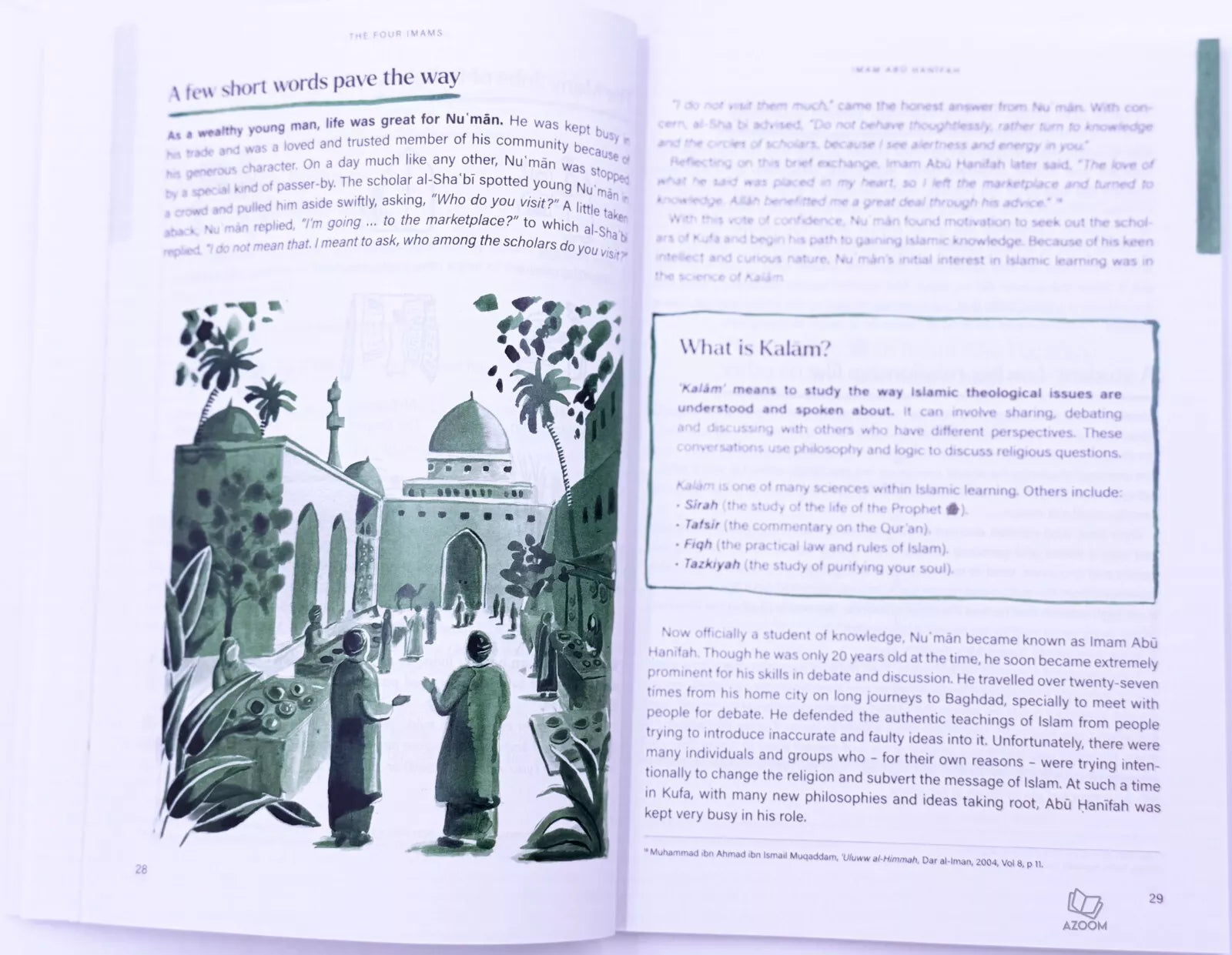 The Four Imams provides an engaging and informative account of the four most well-renowned Imams in Islamic history - Iman Abu Hanifa, Imam Malik, Imam Shafi'i and Imam Ahmad. Adopting a story-telling style, it relays biographical information, summarising their fascinating life journeys, alongside lessons and conclusions that have real-world application for the reader in an age-appropriate manner.