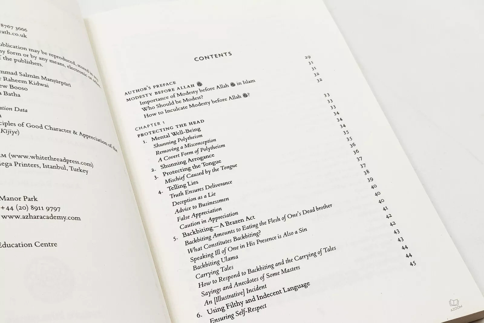 This work is an elaborate commentary on the aforementioned hadith. It covers Divine and Prophetic injunctions, as well as scholarly discussions relating to a variety of subjects, such as having pure belief in Allah; the various facets of spiritual purification; how to use the bodily parts in a lawful manner; maintaining honest financial transactions; the rules of good social conduct; and the remembrance of death and rulings connected to it. The treatise ends with a detailed outline of the substantial events heralding the End of Time and the events of the life after death: in the grave and on the Day of Judgement, and a description of the final abodes of Heaven and Hell.