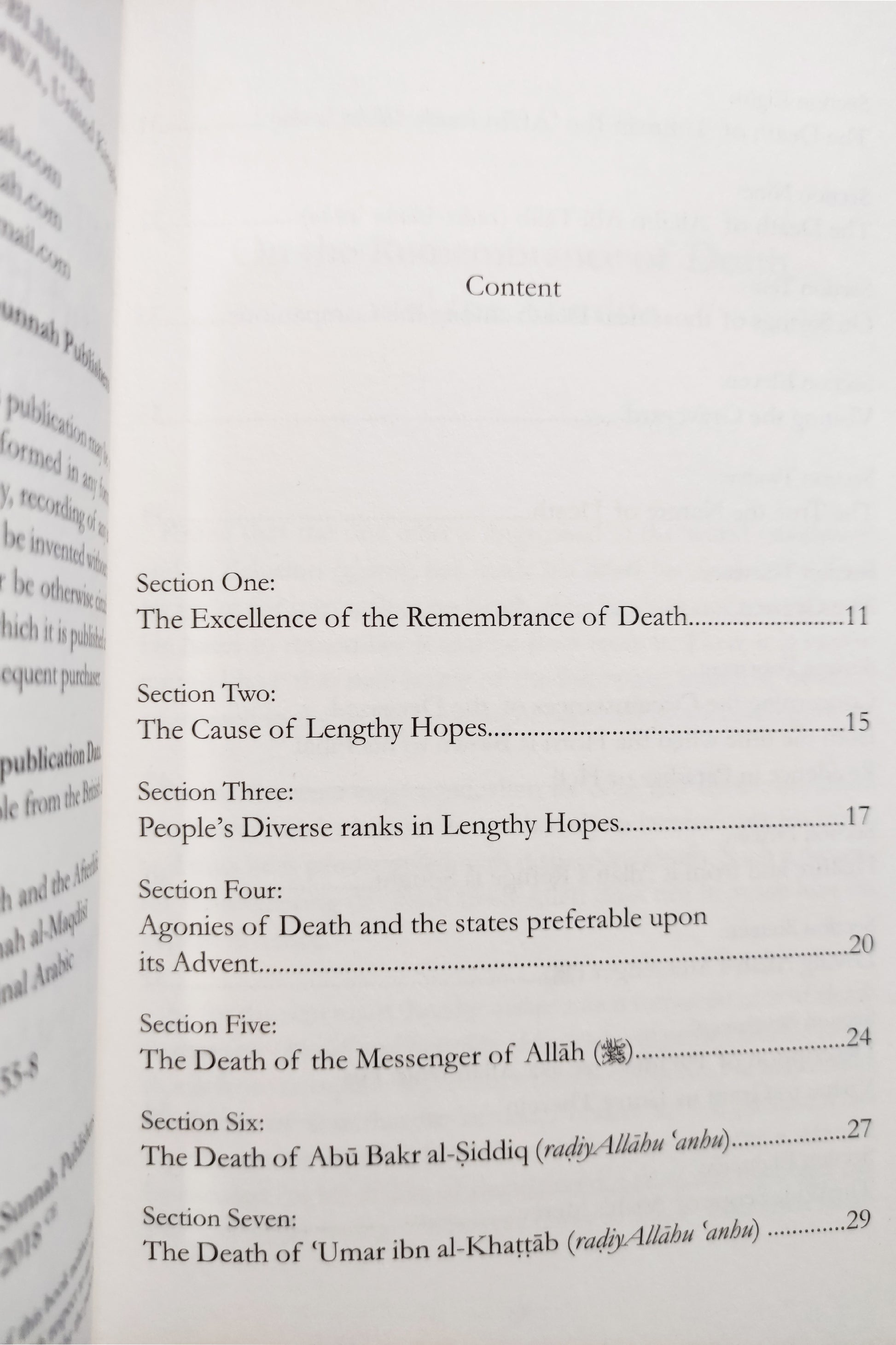 This work will awaken every soul, shaking off the slumber of idleness, firing the spirit up to prepare for the inevitable journey which needs striving and good works in order to reach salvation. This text covers many issues related to the Hereafter, taking the reader on a journey starting from remembering death, having lengthy hopes in the worldly life and learning from the deaths of the Prophet (Peace and Blessings be upon him) and his companions. The text explores the true nature of death, Hellfire, the description of Paradise, virtues of loving the Messenger and ending with never losing hope in the mercy of Allah. It is a small but powerful text which gives a comprehensive overview of the Afterlife; sure to stimulate a positive change in the reader.