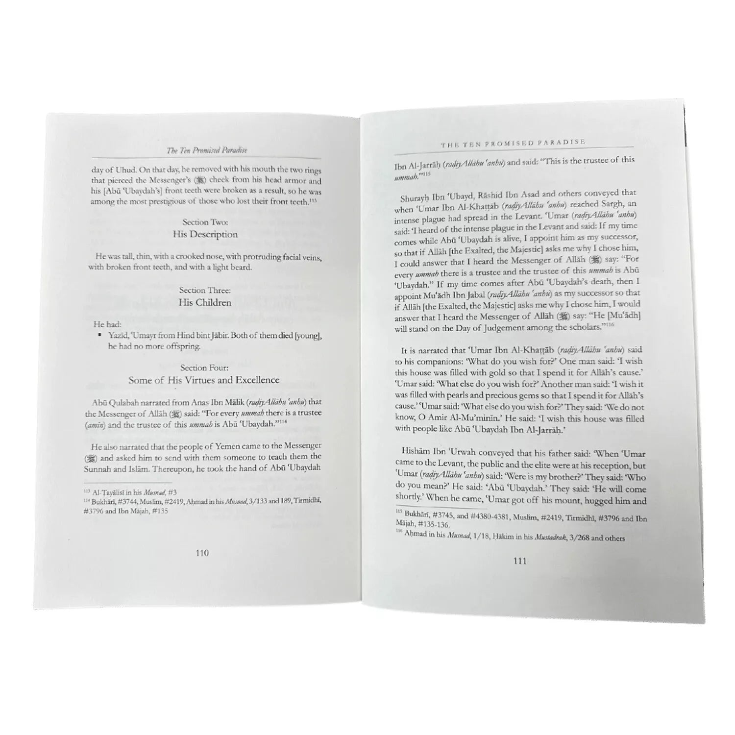 This succinct work by Imam Ibn al-Jawzi recounts the lives of those very Companions mentioned together in the well-known Prophetic narration found in Sunan al-Tirmidhi: "Abu Bakr is in Paradise. 'Umar is in Paradise. 'Uthman is in Paradise. 'Ali is in Paradise. Talhah is in Paradise. Al-Zubayr is in Paradise. 'Abd al-Rahman ibn ‘Awf is in Paradise. Sa’d ibn Abi Waqqas is in Paradise. Sa’id ibn Zayd is in Paradise, and Abu ‘Ubaydah ibn al-Jarrah is in Paradise."