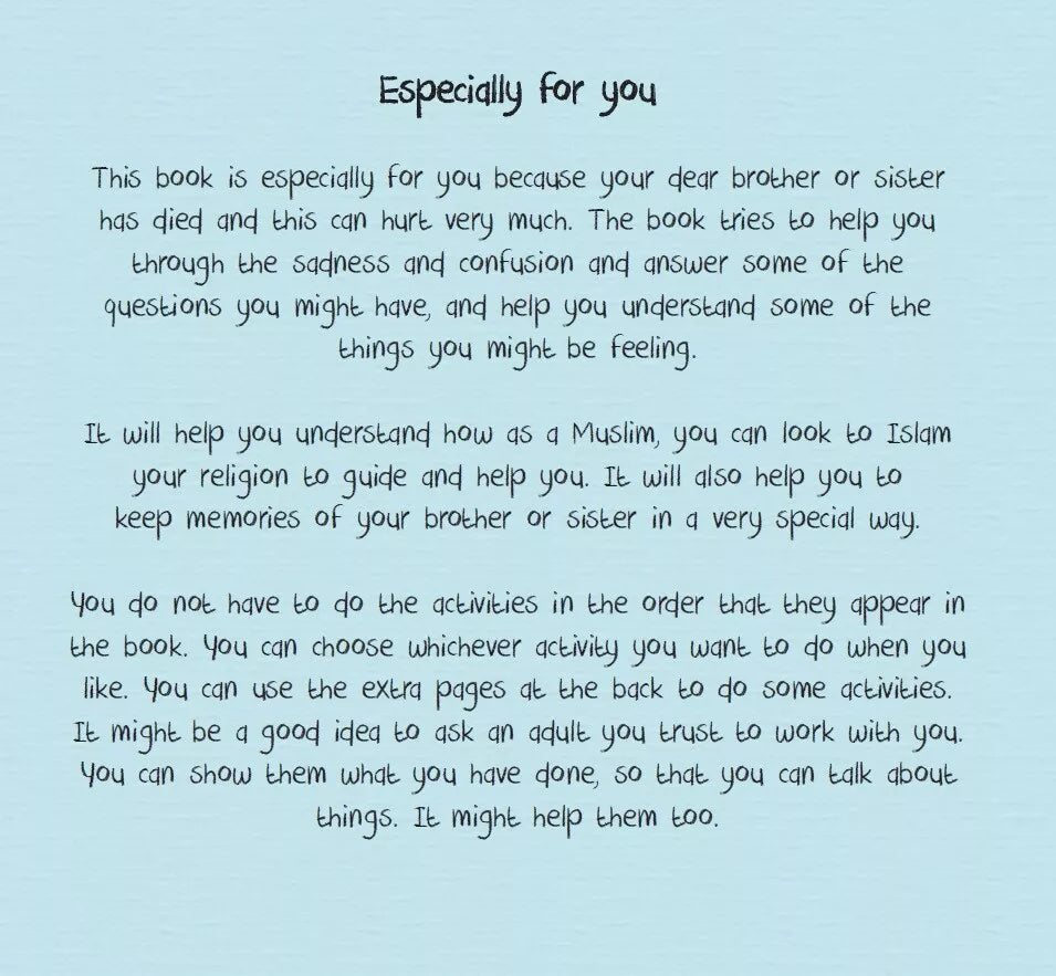 As children work through the book they will learn about themselves, about life and the Islamic perspective of death. In turn, this will insha-Allah, help them to grow and strengthen from their experience.